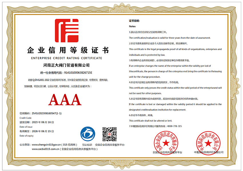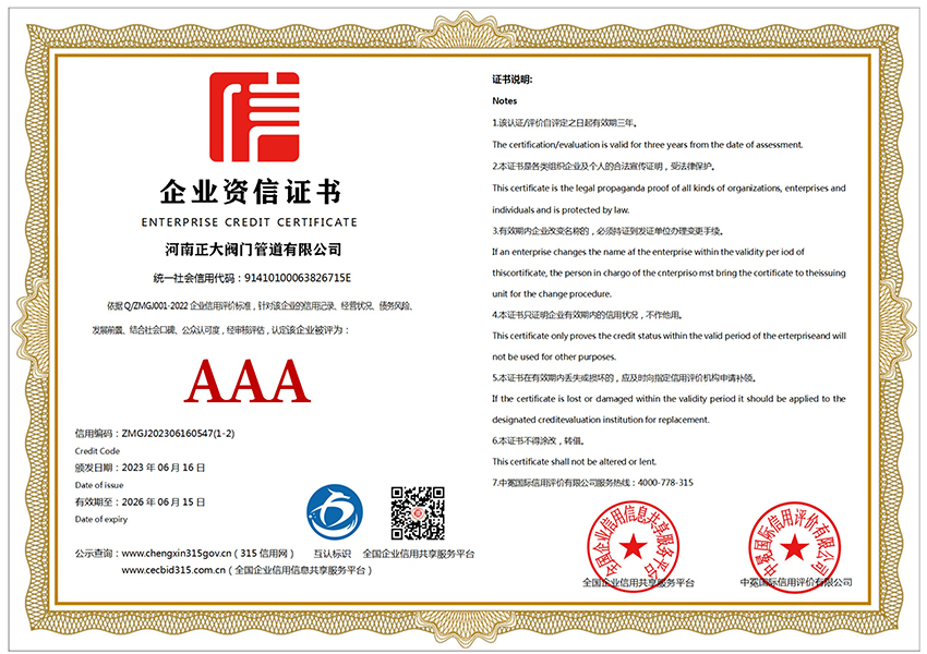 當前位置:河南正大閥門管道有限公司 > 公司資質